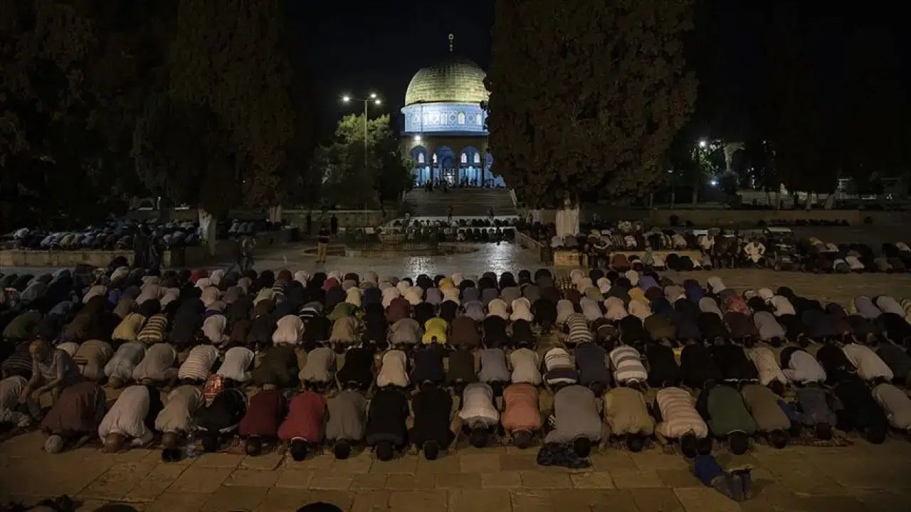 İsrail'in işgal altındaki Doğu Kudüs'te bulunan Mescid-i Aksa'da bu yılın Ramazan ayının ilk teravih namazı eda edildi. İbadet için akşamın erken saatlerinden itibaren çevre bölgelerden Mescid-i Aksa'ya gelen birçok Filistinli, İsrail'in şehir genelinde ve mescidin kapılarında erişime yönelik yoğun kısıtlamalarına rağmen güçlü bir manevi atmosferde ibadetlerini gerçekleştirdi. İsrail'in engellemelerine rağmen yüzlerce kişi Mescid-i Aksa'nın avlularında saf tuttu. Cemaat, yatsı ve teravih namazlarını derin bir manevi atmosfer içinde eda ederken, İsrail'in ablukasının ve Filistin halkına yönelik devam eden saldırıların sona ermesi için dua etti.