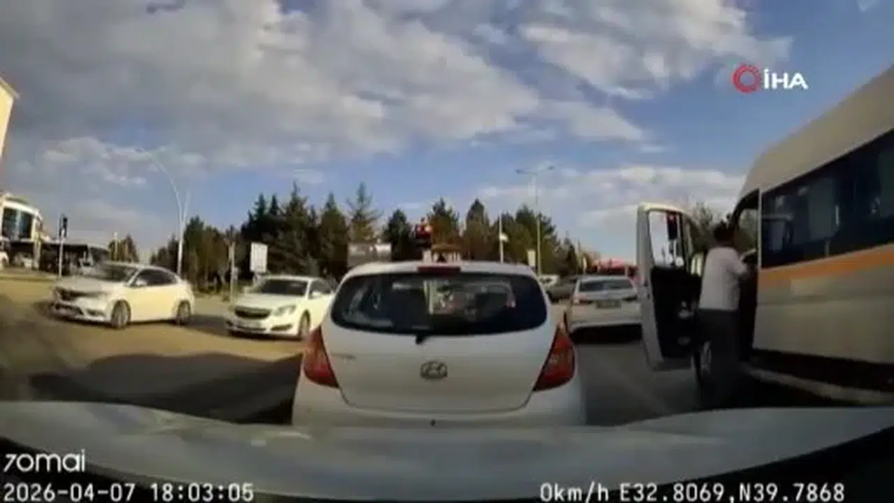 Olay, Gölbaşı ilçesinde akşam saatlerinde meydana geldi. Edinilen bilgilere göre, henüz belirlenemeyen bir nedenle bir otomobil sürücüsü ile servis şoförü arasında tartışma çıktı. Tartışmanın büyümesiyle otomobil sürücüsü araçtan inerek, servis sürücüsünün yanına gitti. Servisin kapısını açan otomobil sürücüsü servis şoförüne yumruk atmaya başladı. Olayı gören çevredeki vatandaşların araya girmesiyle kavga ayrılırken, o anlar bir otomobilde bulunan araç kamerasına yansıdı.