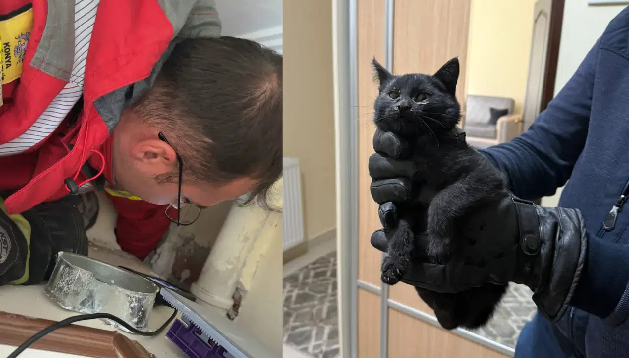 Kedi sesini duyan vatandaşların ihbarı üzerine adrese Konya Büyükşehir Belediyesi İtfaiyesi ekipleri sevk edildi. Binanın çatısına çıkan ekipler görüntüleme sistemiyle bacadan kedinin yerini tespit etti. Kedi, itfaiye ekipleri tarafından 6 saat süren çalışmanın ardından 1. kat ile zemin kat arasında dairenin bacasından kurtarıldı.