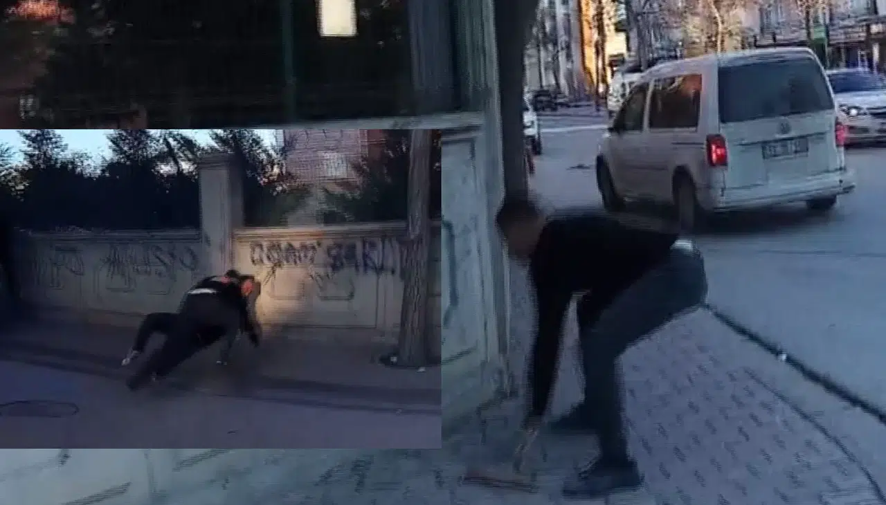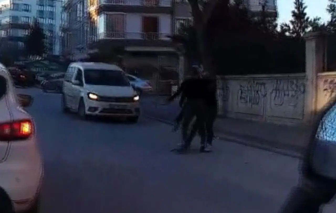 Bu sırada taraflardan birisinin aracı önce kaldırımı aşıp önünü, sonrasında manevra yaparken arkasını bir apartmanın bahçe duvarına çarptı. Kavgayı gören vatandaşlar olaya müdahale ederek tarafları ayırmaya çalıştı. Yaşanan kavga ise yoldan geçen bir motosiklet sürücüsünün kask kamerasına saniye saniye yansıdı.