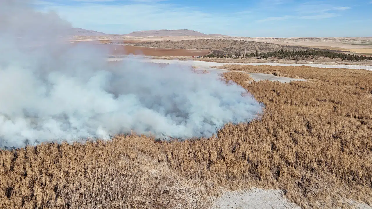 Konya'nın kuş cenneti alev alev yanıyor. Yangın, ilçeye bağlı Kozanlı Mahallesinde çıktı. Edinilen bilgiye göre, birkaç yıl öncesine kadar kuş cenneti olan, balıkların da bulunduğu yoğun sazlığı olan Gökgöl'ün kurumasının ardından sazlıklar da ortaya çıktı.