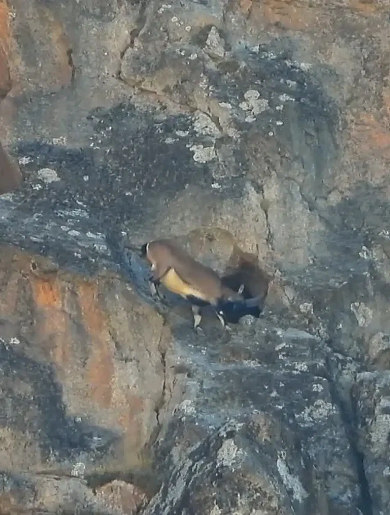 Yüksek rakımlı kayalık bölgede yiyecek arayışında olan yetişkin dağ keçisi, dar açıklığa sahip bir mağara girişine yöneldi. Oldukça büyük ve kıvrımlı boynuzlarına rağmen çevik hareketlerle dar geçitten içeri giren keçi, gözden kayboldu. Doğada "kayaların ustası" olarak bilinen dağ keçilerinin sarp ve zor arazi koşullarına uyum yetenekleri bir kez daha gözler önüne serildi. Bölgedeki yaban hayatı gözlemcileri, bu tür davranışların özellikle besin ve barınma arayışında sıkça görülebildiğini belirtti.