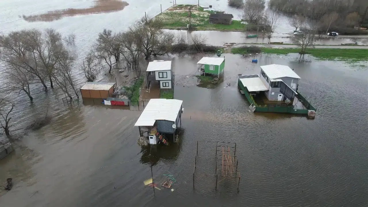 Bursa'da Ulubat Gölü'nün taşmasıyla göle komşu Akçalar Mahallesi'nde onlarca tiny house ve hobi evi sular altında kaldı. Göl havzasının ne denli geniş bir alan yayıldığı havadan gözler önüne serildi.