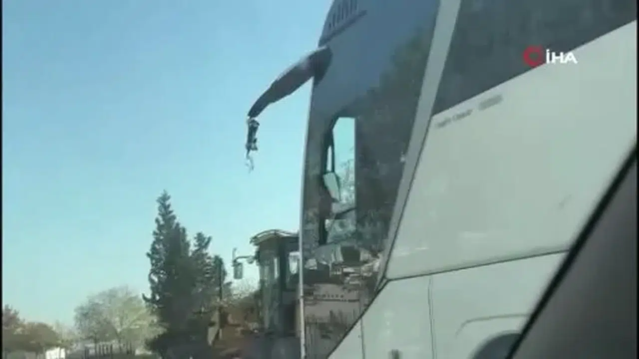 Gaziantep'te şehirler arası sefer yapan bir otobüsün şoförü, kırılan sol aynaya ilginç bir çözüm buldu. Seyir halindeyken aynası kırılan şoför, yolculuğa aynayı eliyle tutarak devam etti. O anlar ise otobüsün yanından geçen bir araçtaki vatandaş tarafından cep telefonu kamerasıyla kaydedildi.