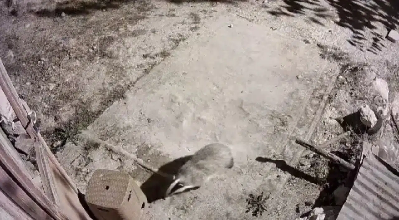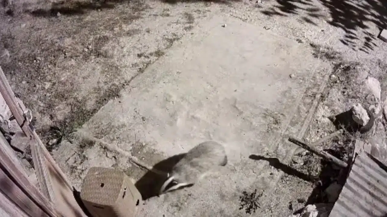 Elazığ'ın Keban ilçesine bağlı Gökbelen köyünde Selim Aslan'a ait evin önünde bal porsuğu ile sansar yiyecek ararken güvenlik kameralarına yakalandı.