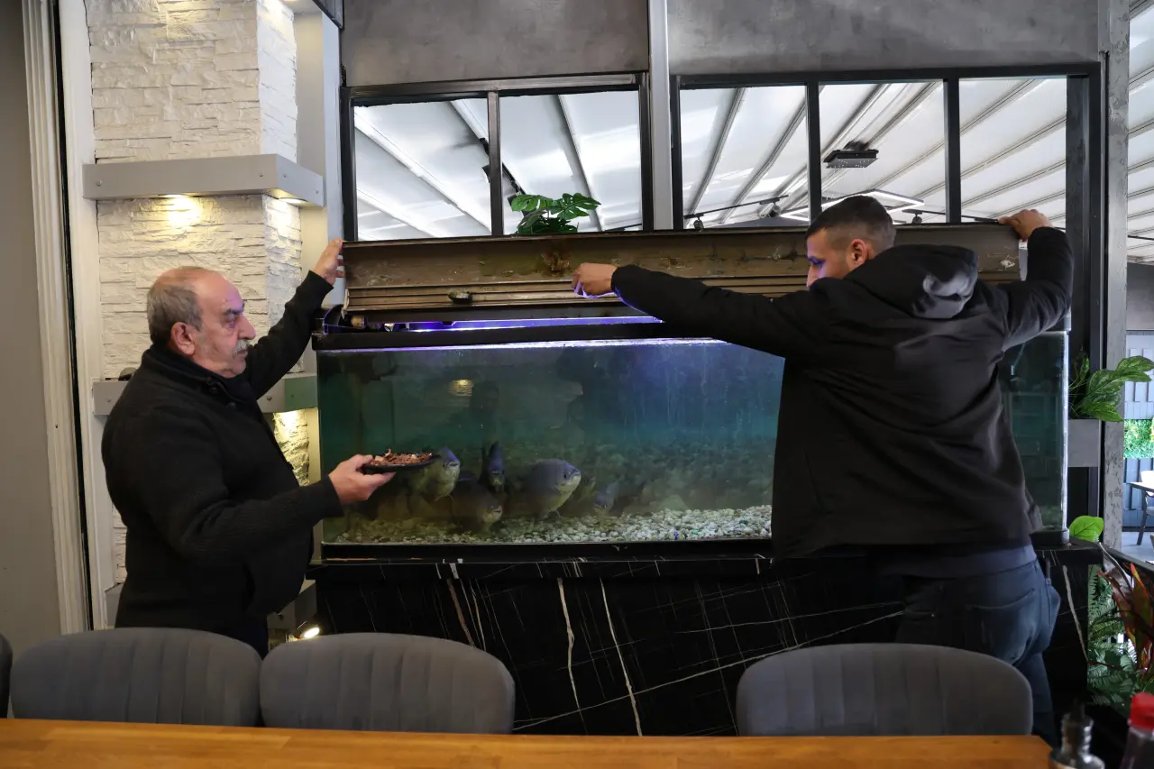 Kentte yaklaşık 76 yıldır hizmet veren bu lokantada 12 yıldır 8 adet pirana balığı besleniyor. İşletme sahibi Şaban Yakşi, keskin dişleri, etçil ve sürü halinde gezdiklerinde tehlikeli olan bu balık türünü özel yemlerinin yanı sıra günde 2-3 porsiyon kelle paça, dil ve işkembeyle besliyor.