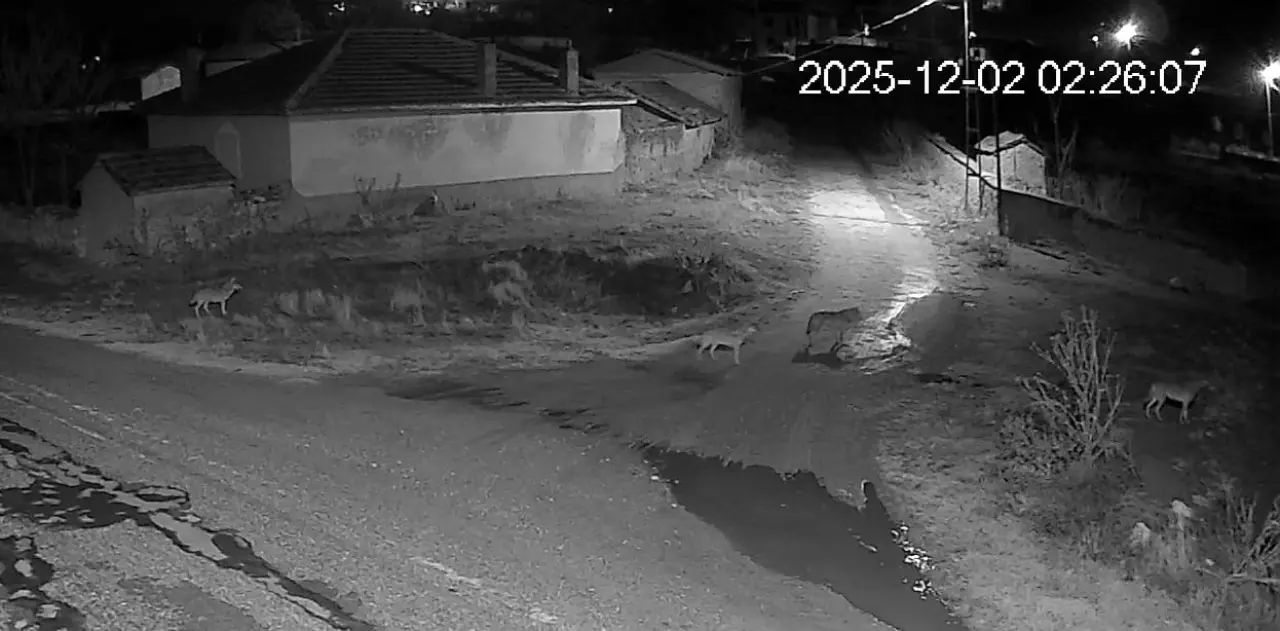 Konya’nın Yunak ilçesine bağlı Ortakışla Mahallesi’nde aç kalan bir kurt sürüsü, gece saatlerinde mahalle meydanına indi. Güvenlik kamerasına yansıyan görüntülerde, yiyecek arayışı içinde olan kurtların yaklaşık bir dakika boyunca meydanda dolaştığı görüldü.