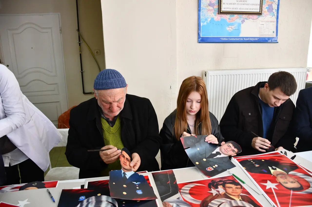 Akşehir Şehit Aileleri ve Gaziler Derneği tarafından düzenlenen kurs kapsamında, şehitlerin fotoğrafları üç boyutlu kağıt rölyef tekniğiyle hazırlanıyor. Dernek Başkanı İsmail İnce'nin öncülüğünde, Akşehir Halk Eğitim Merkezi ile Akşehir Sosyal Hizmet Merkezi Müdürlüğü iş birliğinde gerçekleştirilen kurs; şehit aileleri ve gazileri bir araya getirerek hem sanatsal hem de duygusal bir ortam oluşturuyor. Şehit anneleri, babaları, eşleri ve kardeşleri, şehitlerin fotoğraflarını katmanlı kağıt teknikleriyle üç boyutlu hale getirerek anlamlı eserler ortaya çıkarıyor.