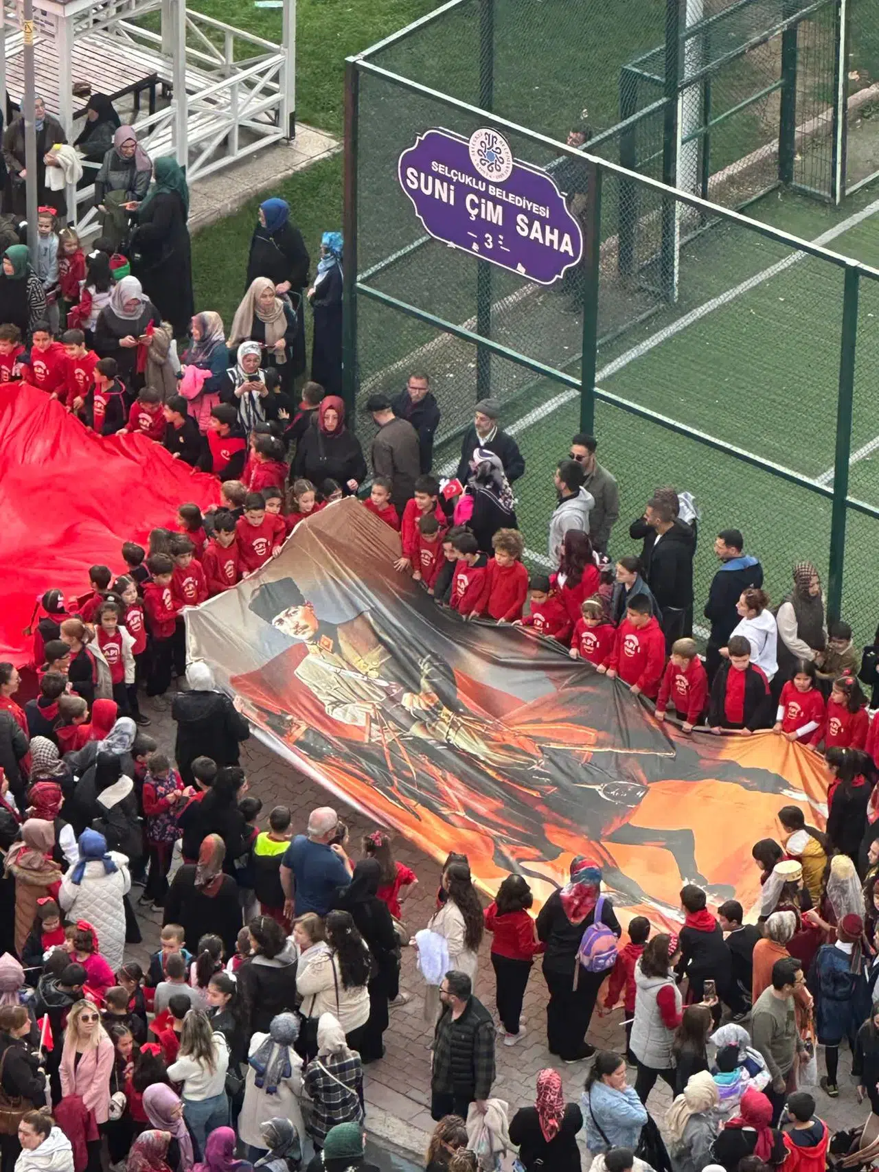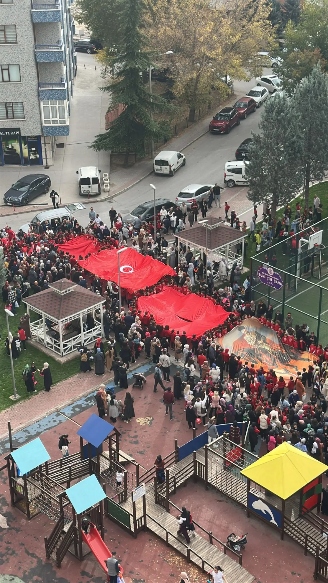 Merkez bulunan Nene Hatun Parkı'nda buluşan öğrenciler seremoni yaptı. Yüzlerce öğrencinin katıldığı seremoni gösterisi vatandaşlardan alkış topladı. Öğrencilere destek ise balkondan seremoniyi izleyen vatandaşlardan geldi. Vatandaşlar Türk Bayraklarını asarak 29 Ekim Cumhuriyet Bayramı coşkusuna ortak oldu.