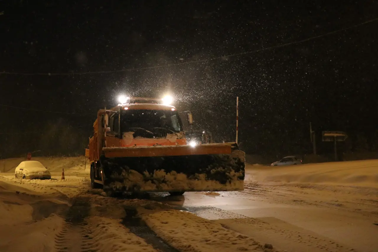 Karayolları ekipleri, kar yağışı sebebiyle yolun kapanmaması için bölgede sürekli ring halinde çalışmalarını sürdürüyor.