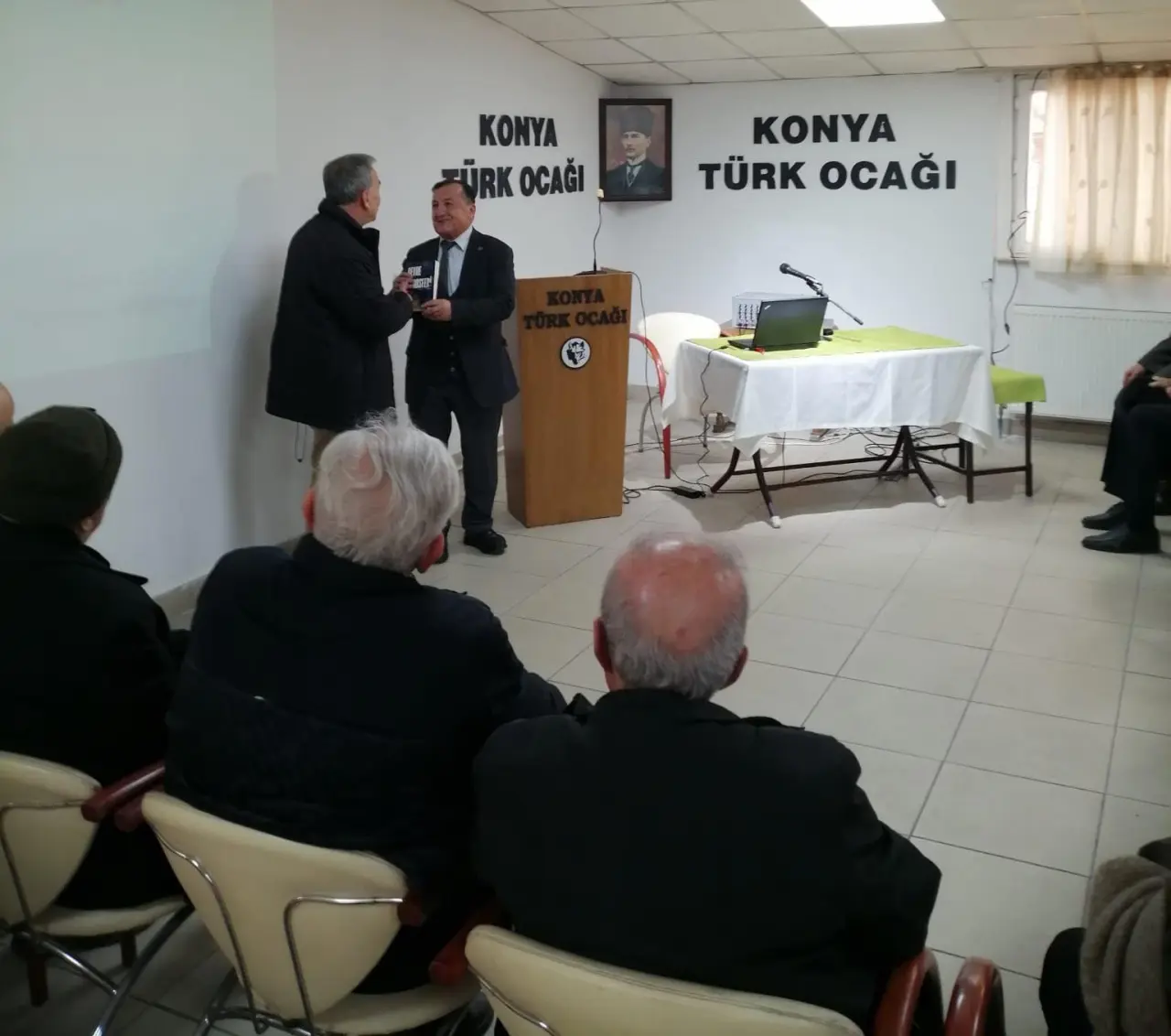 Konferans sonunda Türk Ocakları Başkanlığı tarafından Namık Ceyhan’a teşekkür edilip kitap armağan edildi. Namık Ceyhan’da “Çevre Atmosferi” kitabını dernek kütüphanesine hediye etti.