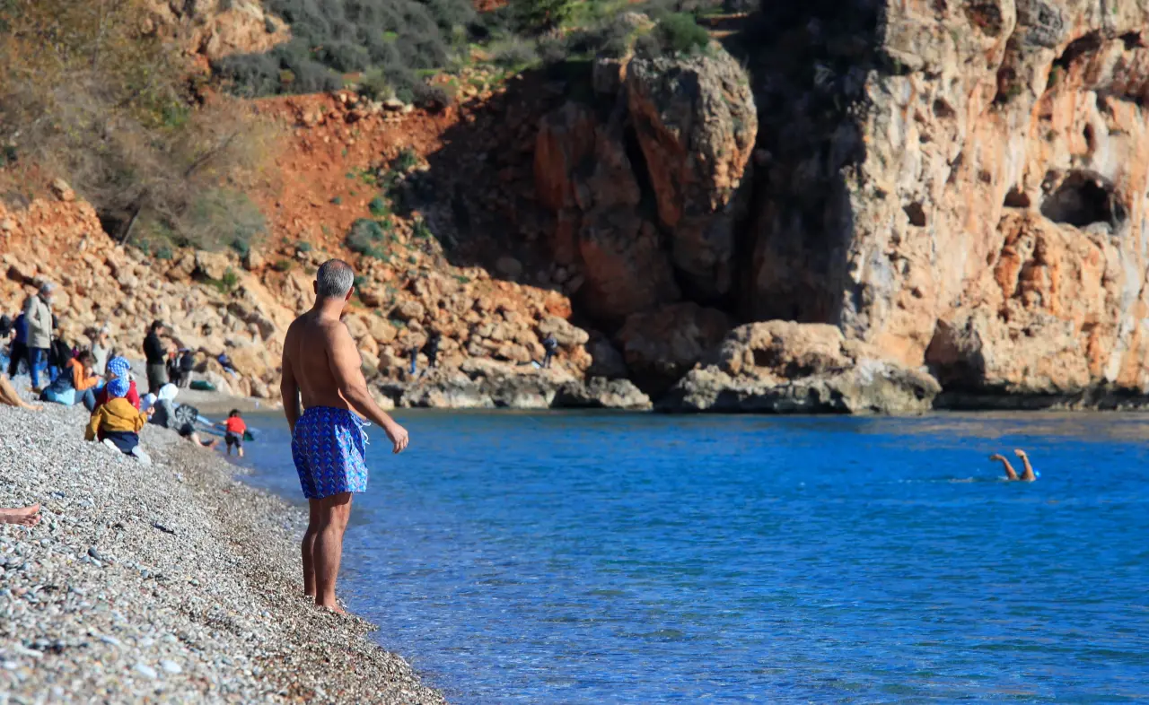Hafta sonu olması nedeniyle soğuk havaya rağmen güneşi fırsat bilerek Konyaaltı Sahilini dolduran bazı vatandaşlar denize girerken, kimileri ise sahilde güneşlenmeyi tercih etti. Konyaaltı Sahili'nde denize giren vatandaşlardan Nazmi Üstündağ, denizin havadan daha sıcak olduğunu belirterek, "Saklıkent'te kar varken burada denize giriyoruz. Su güzel ama dışarıda esinti biraz üşütebiliyor. Ama deniz gayet güzel, tertemiz. Yaz kış her hafta sonu denize giriyorum, hiç şaşmaz. Doğuda kar, Saklıkent'te kar, burada deniz. Yüzmeye devam" dedi.