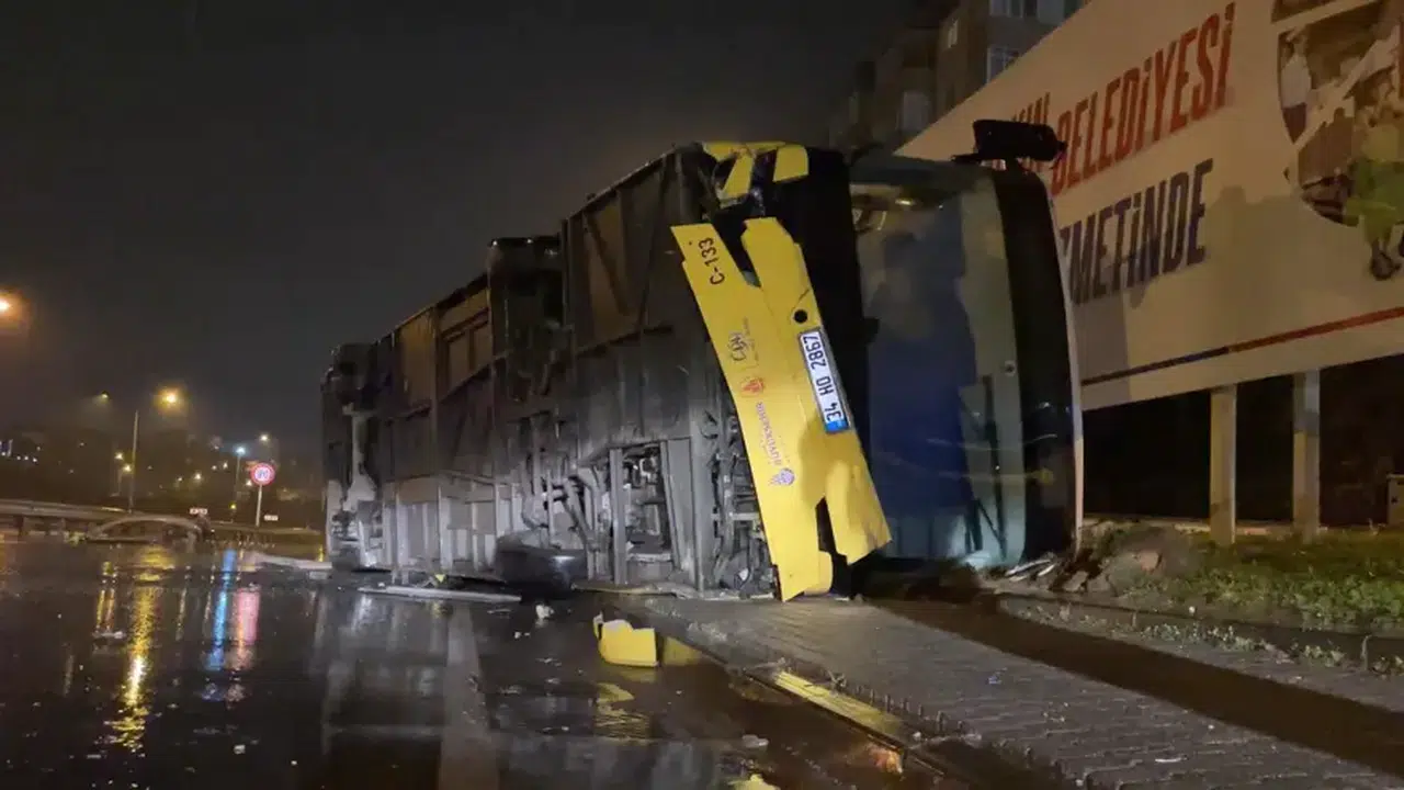 ZİNCİRLEME KAZALAR OLDU İETT OTOBÜSÜ DEVRİLDİ