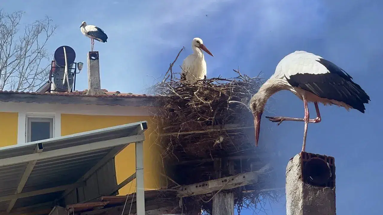 Sabah kalktığında yuvada leylek gören Adem Yılmaz, önce Yaren leylek sanarak heyecanlandı ancak sonra eşi olduğunu fark etti.