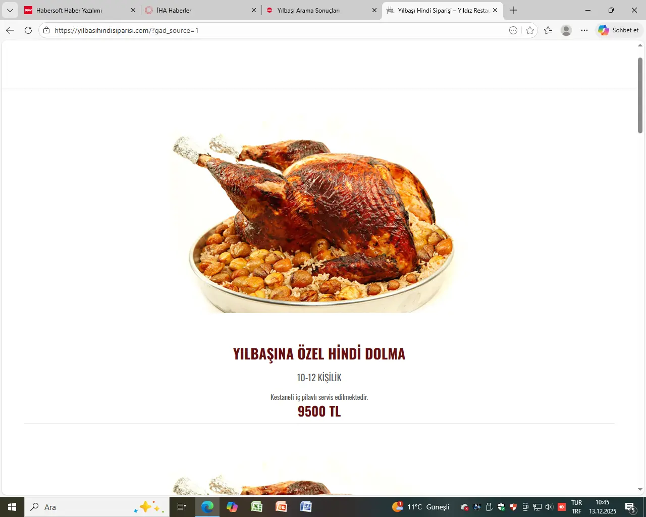 Yılbaşı bütün hindi menüsü ise 4 bin 500 liradan başlıyor.