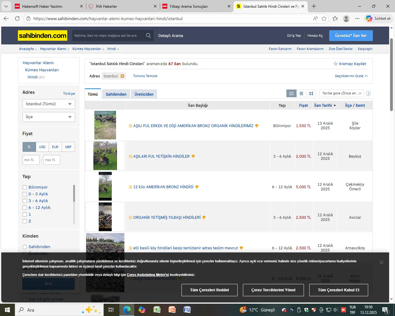 Hindi fiyatları yeni yıl yaklaşırken gündemde en çok araştırılanlar arasında yer alıyor. Yılbaşı sofralarını süsleyen hindiler bu yıl da büyük ilgi görüyor.